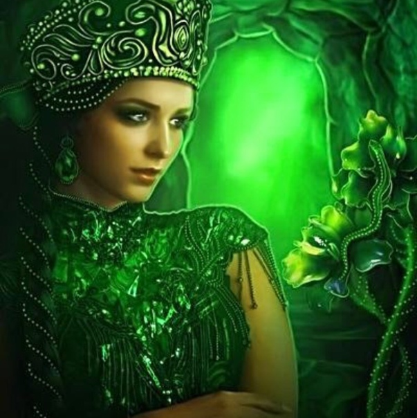 На Урале Хозяйку Медной горы называли по-разному, порой упоминая её как Золотую бабу, Каменную девку или Малахитницу. Она является истинной царицей гор, где скрыты несметные сокровища. Властная и грозная, она может поступить жестоко по отношению к человеку, а может и милостиво одарить его благами. Несмотря на суровый нрав, она справедлива и честна. Однако в своих пересказах местных преданий Бажов достаточно сдержанно отзывается о милости Хозяйки Медной горы. Писатель отмечает, что злому человеку встреча с ней сулит гибель, однако и доброму лучше избегать властительницы гор. Однако демонизировать её образ не стоит. Родной стихией Хозяйки Медной горы является земля, где она обитает. Часто она превращается в зелёную ящерицу, что позволяет ей наблюдать за людьми, слушать их беседы. Если потребуется, может она и послание передать человеку, и лично обратиться к нему. в такие моменты путник, словно окаменевший, замирает, видя. как на его глазах простая ящерка превращается в красавицу, правите
