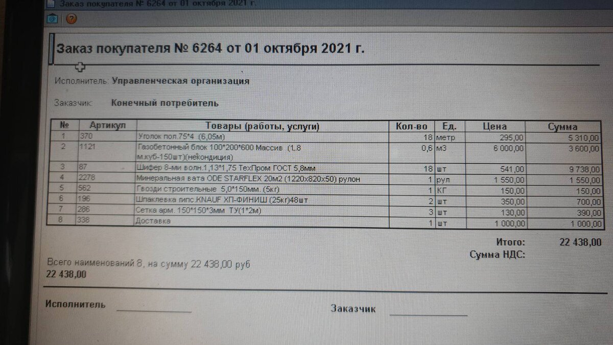 А на следующий день началось всё интересное. Мы созвонились, цены уже не обсуждали, просто я уточнила количество материалов и мне на мессенджер приходит фото чека, что называется, почувствуй разницу