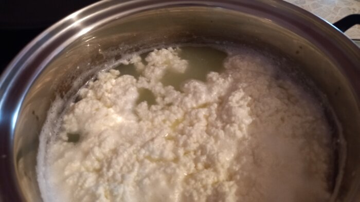Такой сыр я делаю не регулярной основе, раз в две недели, как минимум, а то и чаще. Разнообразие заключается в добавках. Одна из моих любимых - чеснок с укропом. Другая - грецкие орехи Сам сыр делается по одной и той же схеме. Молоко нужно вскипятить и сквасить его чем-нибудь, соком лимона, лимонной кислотой, даже уксус подойдет. Я, как правило, использую кефир. Технология такая: 1 литр молока довести до кипения и добавить поллитра кефира. Очень удобно, что кефир начали выпускать в поллитровых мягких упаковках, кстати. Сыворотка сразу начинает отделяться от творожка - основы сыра Как только это произошло, даю покипеть еще 5 минут и отбрасываю будущий сыр на дуршлаг, застеленный марлей Грецкие орешки нужно измельчить, без фанатизма, так чтобы остались заметные кусочки. Удобно это сделать в ступке, а можно просто порезать ножом Сырную массу нужно немного посолить по вкусу и добавить орехи. Аккуратно перемшать Далее марлю с сыром аккуратно свернуть и поместить под пресс на час, чтобы стек