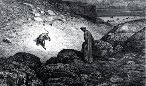 Пройдя до половины жизнь, в дремучем лесу просыпается человек. Его сердце пронзает скорбь по дому. Он сбился с пути. Ночь темна и страшна настолько, что смерть становится заманчивым концом. Когда дикие звери нападают на легкую добычу, молитвы человека получают ответ. Появляется проводник, обещающий показать ему путь в рай…