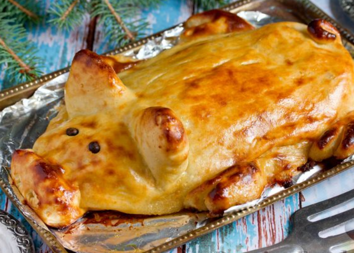 Запеканка "Поросёнок" из картофельного пюре и мясного фарша смотрится забавно