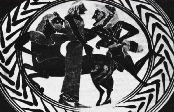 И стал Ахелой глумиться над величавым отпрыском Зевса и порочить мама его Алкмену. Нахмурив брови, сердито посмотрел Геракл на Ахелоя; пламенем гнева блеснули его очи, и заявил он: