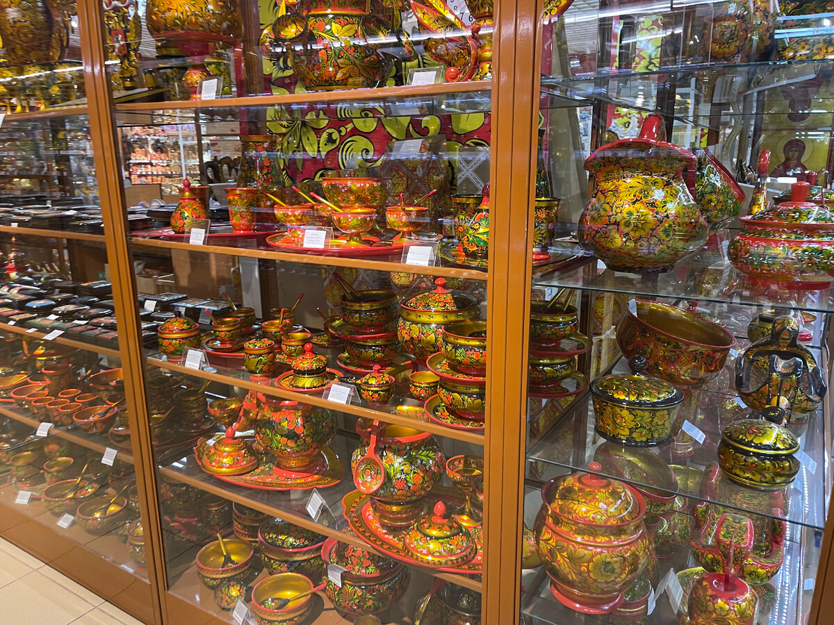 Я уже не раз писала на своем канале «Соло-путешествия», что в последнее время очень интересуюсь российскими промыслами. Я просто влюбилась в вологодские кружева и филигрань, открыла для себя красоту жостовской росписи и каслинского литья, да и много других было удивлений и неожиданностей. Но сегодня речь о хохломе. Я всегда ее, мягко скажем, не уважала. Хохлома кажется мне слишком банальной, растиражированной до неприличия, аляповатой и кричащей. В общем, не понимаю я этого бьющего по глазам сочетания золота с черным и красным. Мне немного грустно, что иностранцам повсеместно предлагают исключительно хохлому, как главное русское искусство. Но в этом году я увидела две новые версии привычной росписи. Одна из них не совсем хохлома, хотя очень похожа (или все-таки хохлома?). Это голубая вологодская роспись. Сюжетно она такая же как хохлома, но в другой палитре. Здесь используется серебряный фон и голубой узор. Это просто невероятно красиво. Я не купила в Вологде себе ничего с такой роспис