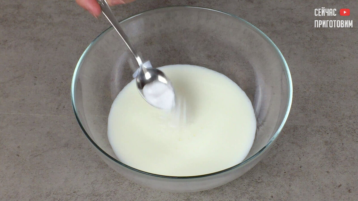 До чего же они пышные, воздушные и очень вкусные. А главное готовятся без всяких заморочек, даже холодные на следующий день они остаются так же пышными и вкусными. Давайте готовить! Список продуктов и короткий видео-рецепт будет в конце статьи. В миску выливаем теплый кефир и добавляем чайную ложку соды. Перемешиваем. Соду не нужно гасить уксусом, мы просто соду добавляем в кефир, это кислая среда и этого будет достаточно. Теперь в кефир добавляем сахар и щепотку соли. И опять перемешиваем. И теперь порциями добавляем муку и перемешиваем. Пышность оладий будет зависеть от густоты теста, тесто должно быть густым. Долго вымешивать не нужно, просто перемешиваем, что бы не было комочков. Тесто должно быть вот такой густоты, оно должно медленно стекать с ложки. На разогретую сковородку наливаем немного растительного масла. И с помощью ложки выкладываем тесто, формируя оладьи. Жарим оладьи на среднем огне по 2-3 минуты с одной стороны и переворачиваем на другую сторону. При жарке оладьи пря