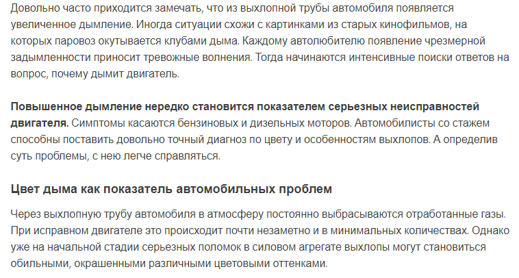 Привет мои дорогие автолюбители. Сегодня мы поговорим немного о неприятной теме - сильный дым из выхлопной трубы автомобиля. Проще говоря - мотор дымит как печка и не понятно что с этим делать. Но я знаю, что вам может помочь. присаживайтесь поудобнее, сейас начнем разбор с самого начала. Поэтому, если вас беспокоит дым из выхлопной трубы автомобиля сначала понаблюдайте, чтобы с точными симптомами приехать на СТО, а потом уже смело езжайте к механикам.
