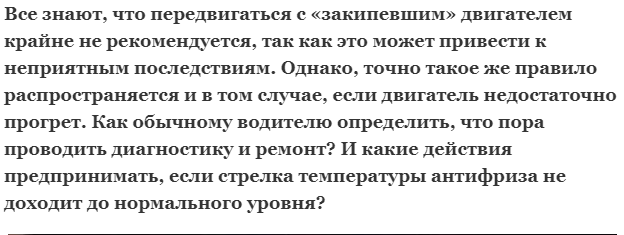 Здравствуйте, мои дорогие друзья. Сегодня я вам расскажу о том, какие причины могут заставить ваш двигатель не прогреваться до своей рабочей температуры. Эта проблема может встречаться как на иномарках так и на отечественных автомобилях. В итоге мы получаем, что прогрев мотора нужен. Потому как все технические характеристики работы двигателя достигаются именно при рабочей температуры.