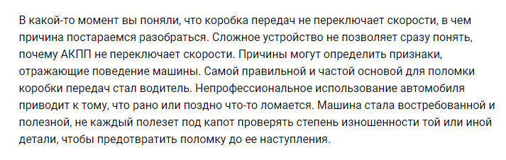 Приветствую вас, мои дорогие друзья - автолюбители. Ко мне часто обращаются с вопросом: А что делать, если АКПП перестала переключаться? И этот вопрос достаточно обширный. Поэтому постараюсь ответить на него максимально подробно. Поэтому если у вас возникают подобные ситуации, то обязательно обращайте на них внимание и постарайтесь как можно скорее заглянуть в сервис для их устранения, либо замены коробки передач целиком. Удачи!