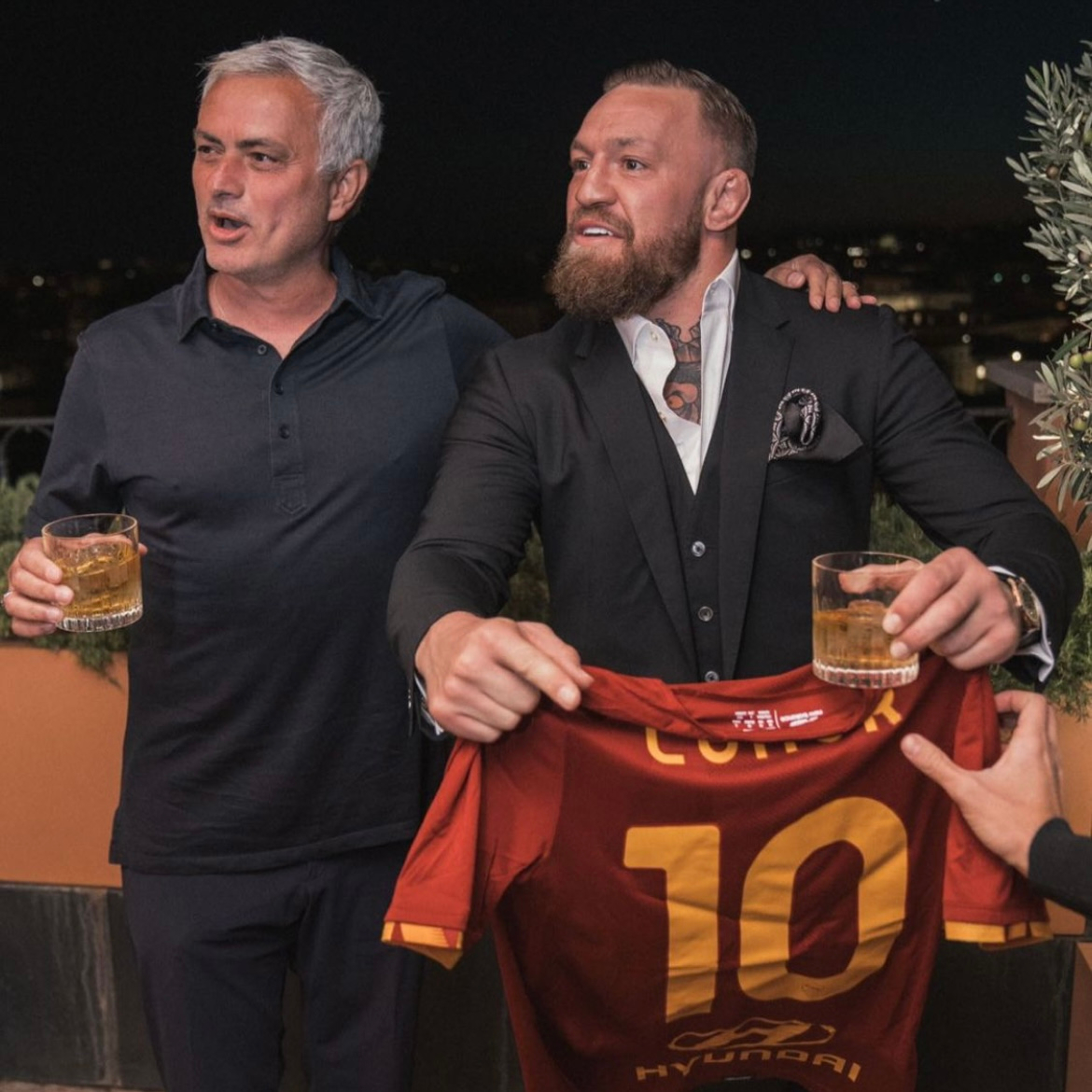"Особенный", как называют Моуриньо болельщики, поблагодарил экс-чемпиона мира за визит и подарил ему футболку "Ромы", которую он сейчас тренирует. Португальский специалист попробовал фирменный виски Макгрегора и поделился впечатлениями от дегустации. "Да это он! Да, великий Конор Макгрегор находится в Риме, и было очень приятно встретиться с ним, поделиться некоторыми историями и предложить ему самую красивую футболку в городе — ФК "Рома". Он сотворил чудо. Конору невозможно отказать, пришлось попробовать его виски", — написал Моуриньо. Жозе Моуринью и Конор Макгрегор Напомним, ранее Фокус рассказывал о том, что Конор Макгрегор побывал в Риме, где впервые за несколько месяцев увиделся с матерью и встретился с многочисленными болельщиками. Последний бой на данный момент Макгрегор пр