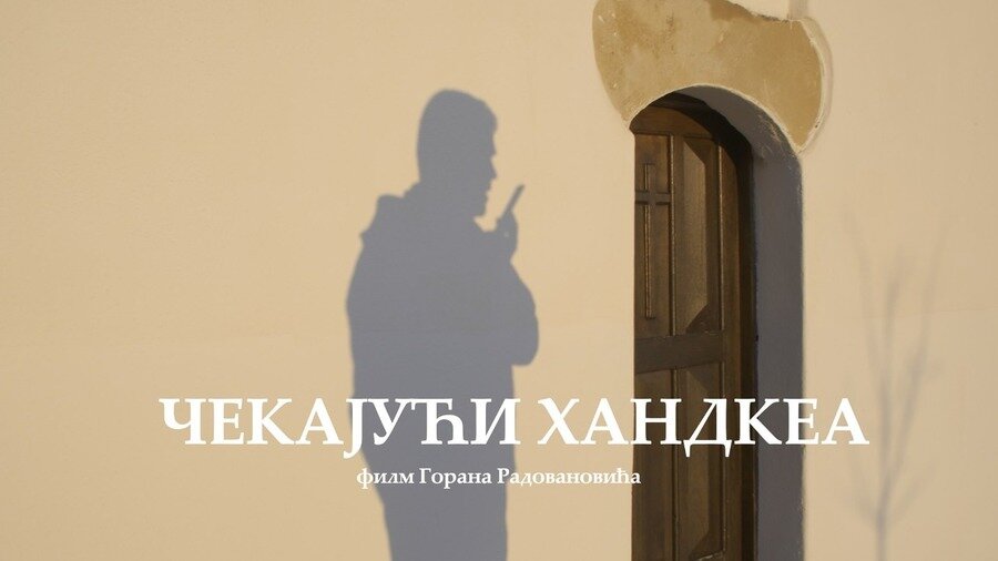 Название картины отсылает нас к одному из самых известных произведений литературы абсурда — пьесе Сэмюэла Беккета «В ожидании Годо». Ее герои, которых мы застаем посреди размытого пространственно-временного континуума, имеют лишь одну цель — дождаться прибытия некоего Годо. По понятным причинам они не могут покинуть место, в котором оказались, и в процессе ожидания им приходится мириться со сложностью и непонятностью их бытия. В фильме Радовановича ядром сюжета становится «ожидание Хандке».