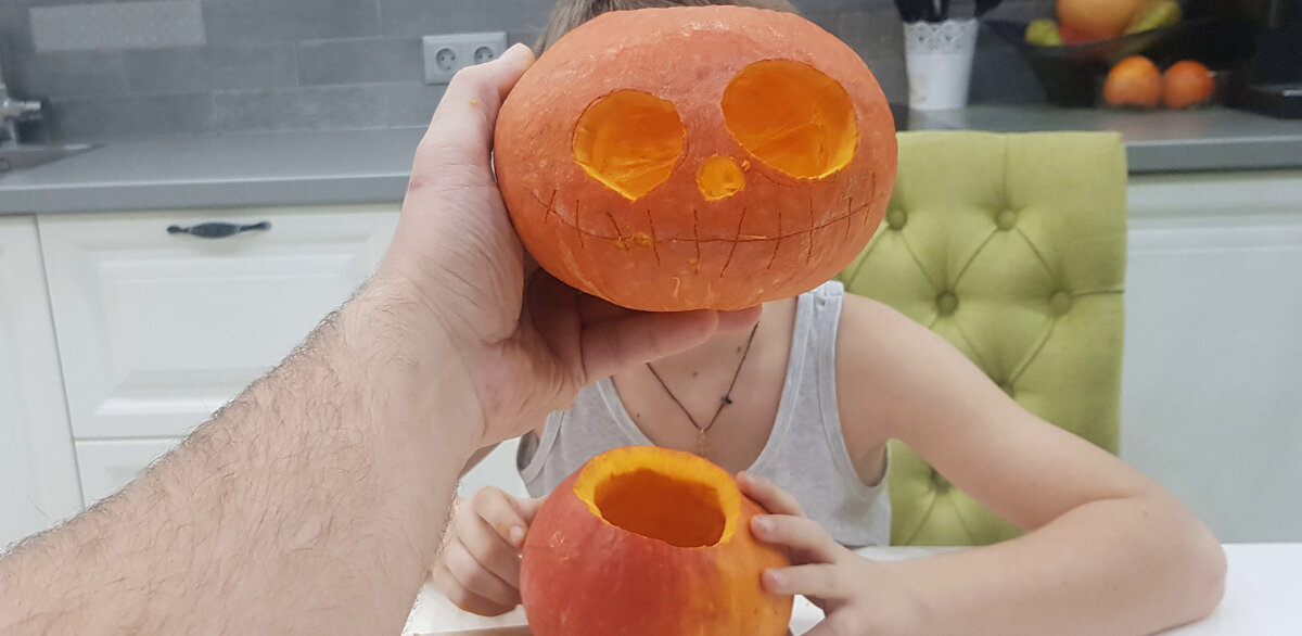 Короткая история с длинными фотографиями 🔹 Хэловин, Хэллоун, Хеллоуин, каждый год он попадается на глаза и каждый год, я залезаю в Вику, посмотреть, что это за фигня. Помню, что как и день Св. Валентина- "ОН НЕ НАШ!!!". А в чём его суть- не помню. Дети-то смотрят мультики, постоянно трещат про тыквы, головы. Надо быть в теме, блин. 🔹 Есть конечно что-то похожее и в нашем языческом прошлом. Велесова ночь. С 31 октября на 01 ноября. Когда наши предки проводили обряды на исполнение желаний, на судьбу и богатство. 🔹 Велес (древний бог) открывает двери между мирами живых и мёртвых. В эту ночь запрещалось шуметь и выходить из дома. Находиться надо было дома и вспоминать своих предков за застольем. Ну в общем, крутовато для меня и пошёл я за тыквами в магазин. Ну а что, 2 тыквы я купил за 110 рублей и получилось то-что получилось, сейчас покажу. Ну и про Велеса я конечно ни слова...мало ли там ещё каких богов. На всё про всё потратили мы около часа. Сидели, смотрели фильм. 🔹 В итоге, пока