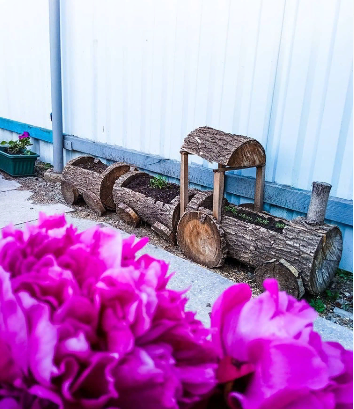 ...И пришла в мою идейную голову достойнейшая внимания мысля. Паровоз из бревна! Прям здесь и сию секунду! Вытащила грустного мужа с больничного с ни к чему вдруг возникшей температурой. Снарядила карти