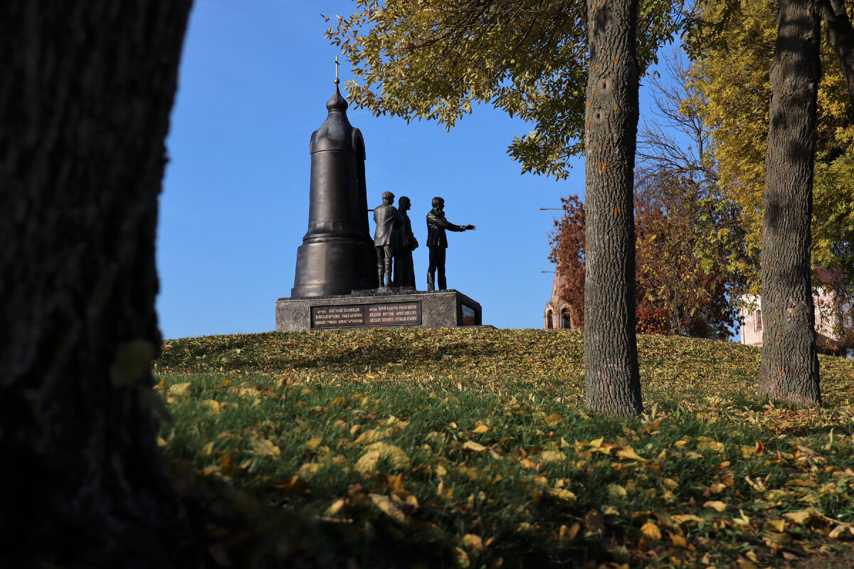 Этой осенью судьба снова занесла меня в Суздаль, в Главный туристический центр. Бросив вещи в номер, я тут же отправилась на свидание с любимым городом. И буквально через сотню метров увидела на пригорке памятник… «Кому бы это?» И тут же в голове мелькнуло: Тарковский? Ведь именно там, на окраине, где чуть позже была построена главная гостиница города, он снимал сцены знаменитого фильма «Андрей Рублев». Подошла чуть ближе и уже ясно увидела знакомые резкие черты лица режиссера. Рядом – еще две фигуры: иконописца и юного литейщика колоколов Бориски. Надпись на постаменте гласит: «Памятник воздвигнут в 2017 году к 85-летию Андрея Тарковского и 50-летию фильма «Андрей Рублев». Попечители: Международный кинофорум «Золотой витязь», Игорь Найвальт, «Фонд науки и культуры Павла Флоренского. Скульптор – Мария Тихонова». Не случайно среди попечителей первым значится форум «Золотой витязь». Его президент, артист Николай Бурляев – не только автор идеи памятника. В фильме «Андрей Рублев» он сыграл