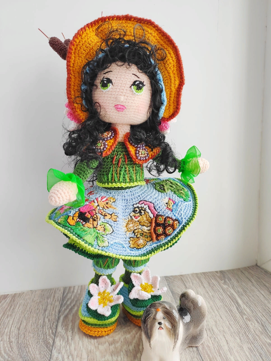 Всем привет! И хотя я писала что мой канал не только о творчестве, а и о самой жизни в которой я живу, как-то неудобно о себе писать, думаю кому это интересно чужая жизнь. Но сегодня у меня есть чем похвастаться, я закончила куколку черепаху Тортиллу. Это очень трудоемкая работа, потому как на юбочке вышивка, с которой я еще не очень дружна. Буратино распускала два раза, ну никак не хотел рождаться-вышиваться. Закончила я куколку еще вчера, но была сильно пасмурная погода и фоткаться мы не стали, сегодня немного получше. А потом она стояла передо мной и её грустные глазки так и говорили "сделай мне ротик". И я поддалась её уговорам, а действительно почему бы и нет?