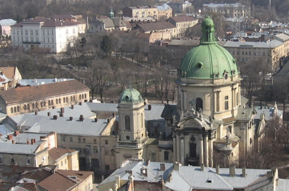 Общий вид Доминиканского монастыря и костёла с городской ратуши Львова