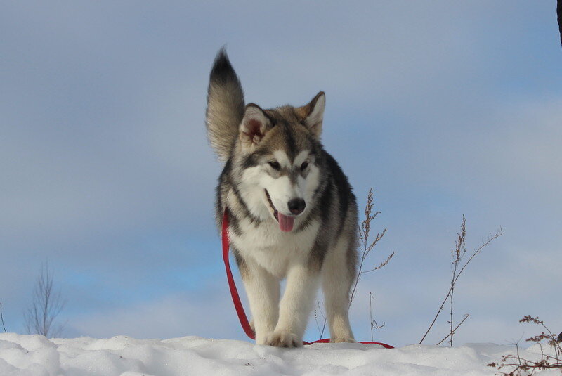 Летом 2017 я начала замечать, что окружающие при виде нас реже улыбаются широкой улыбкой - вес Патрисии перевалил за 30 кг. Щенок стал вызывать страх у прохожих с фобиями. Только собачники могли определить по наивной мордахе, что Пася еще мала. Чего мне только не пришлось услышать от прохожих. А ведь наша маламутиха спокойная, флегматичная и очень комфортная собака– она не рыкнет и не гавкнет. И совершенно невозмутимо может дефилировать в толпе под грохот фейерверков.