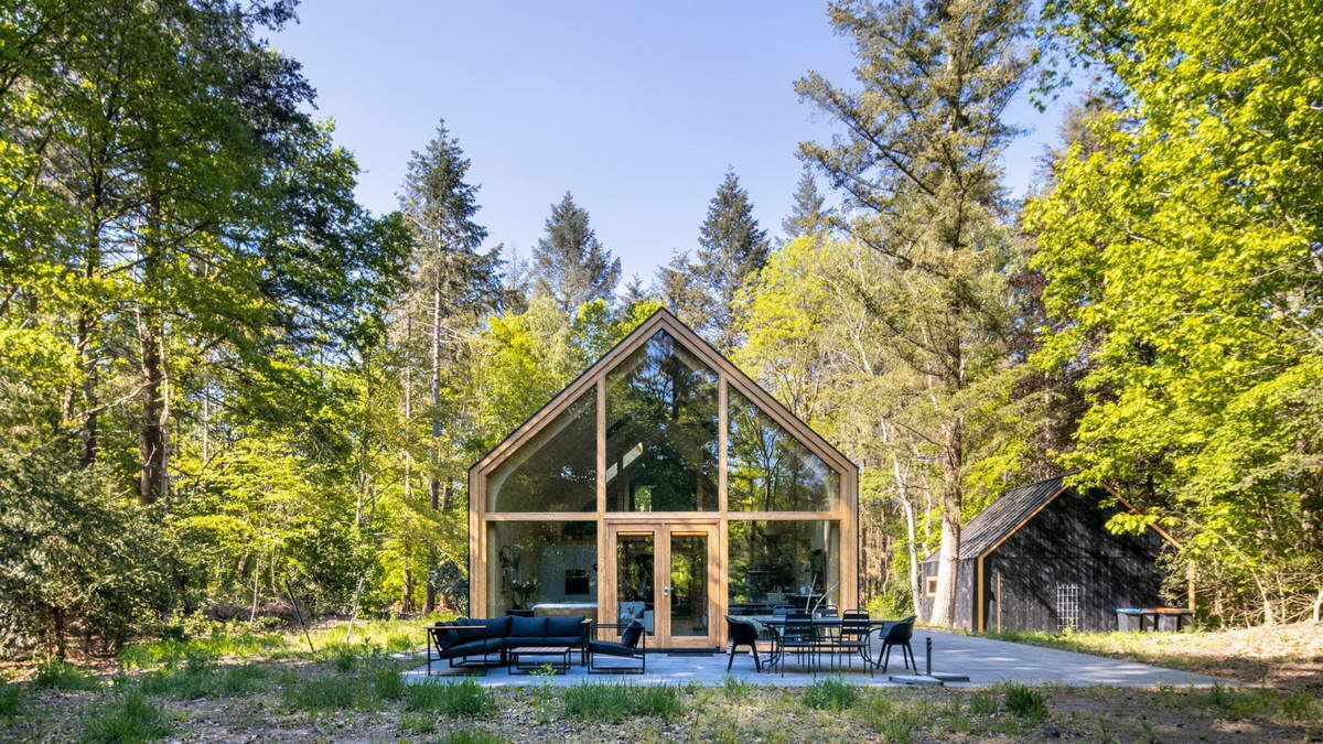 Амстердамская студия Woonpioniers спрятала сборный деревянный домик с большими окнами и высокими изогнутыми интерьерами на лесной поляне в Голландии. Модульное жилище, названное Индиго, было разработано для пары, которая арендует сельский участок в Барчеме и хотела дом с низким уровнем воздействия, который соответствовал бы устойчивому образу жизни. Это четвертый подобный дом, построенный Woonpioniers после того, как студия разработала их, чтобы предложить настраиваемую и доступную модель жилья, которую можно воспроизвести где угодно. Все дома, названные Indigo, построены из сборных конструкций из клееного бруса, чтобы свести к минимуму отходы, транспортировку, время строительства и, в свою очередь, воздействие на окружающую среду. Каюты Indigo спроектированы так, чтобы их можно было легко регулировать, что означает, что их размер адаптирован к конкретным потребностям и выбранному заказчиком месту. Тем не менее, в каждом из них используются одни и те же сборные элементы, которые объ