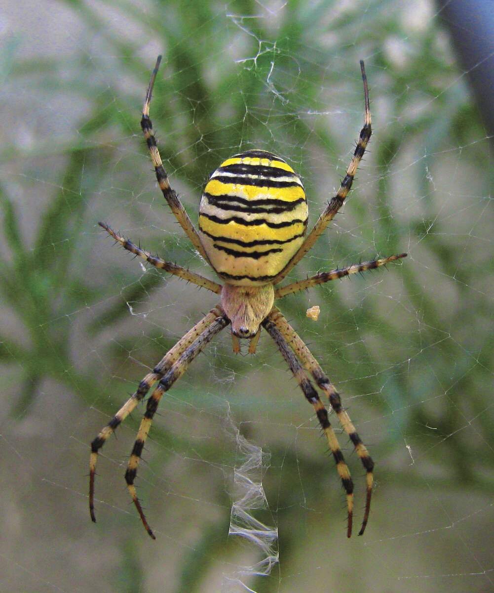 Аргиопа (латинское название «Argiope lobata Pall») – это многочисленный род пауков, принадлежащий семейству Пауков-кругопрядов. Как выглядит Аргиопа – довольно крупный паук. Длина тела взрослой самки в среднем составляет 3 сантиметра, но встречаются и более крупные экземпляры. Самцы имеют гораздо меньшие размеры – в среднем длина тела не превышает пяти миллиметров. Самку аргиопа узнать довольно легко по ее яркой окраске. Голова имеет черную окраску, головогрудь покрыта густыми волосками пепельного цвета, брюшко полосатое (чередуются яркие желтые и черные полоски). Ноги самок очень длинные, окрашены в черный цвет с бледными желтыми кольцами. Из-за наличия полосок самки аргиопа были названы «паук-зебра». Самцы не имеют такой яркой окраски, их тело имеет либо черный, либо серый цвет. Образ жизни Аргиопа живут небольшими колониями, численность которых не превышает 20 особей. Пауки предпочитают селиться в лесах, полях и лугах, где много растительности. Свои сети они растягивают между не