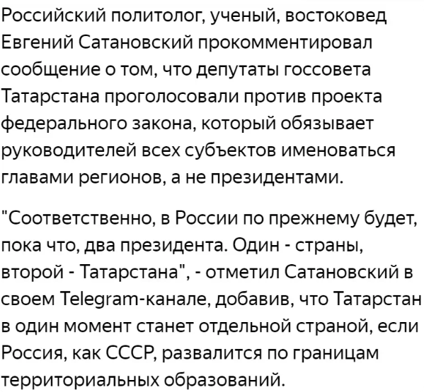 "РФ раскалывается на части" – Сатановский возмущён ближайшим отделением Татарстана. Всё случится уже на следующей неделе