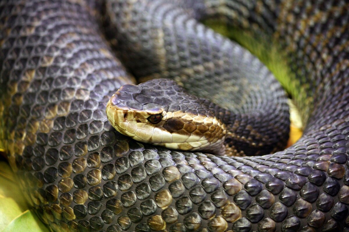 Водяной щитомордник , щитомордник-рыбоед (латинское название Ancistrodon piscivorus) — род ядовитых змей семейства ямкоголовых, настоящий «бич» Соединенных Штатов Америки. На его долю приходится около 95 % всех американцев, пострадавших от укусов змей. За привычку змеи показывать свой белый рот перед атакой простые американцы зовут его cottonmouth — «хлопковый рот». Как выглядит Свое название щитомордники получили за то, что на голове у них распложены большие щитки. В естественных условиях водяной щитомордник — это полутораметровая змея темно-красного (иногда бурого) цвета. Вся ее «спина» покрыта темными выраженными полосами. К старости змеи темнеют, иногда даже до бурого или черного цвета. Средняя продолжительность жизни около 15-21 года. Хвост ярко-желтый, тонкий, хорошо выделяющийся на фоне всего остального тела. Его щитомордник использует как приманку для добычи. Голова небольшая, украшенная двумя белыми полосками по краям. В случае опасности или будучи напуганным щитомордник