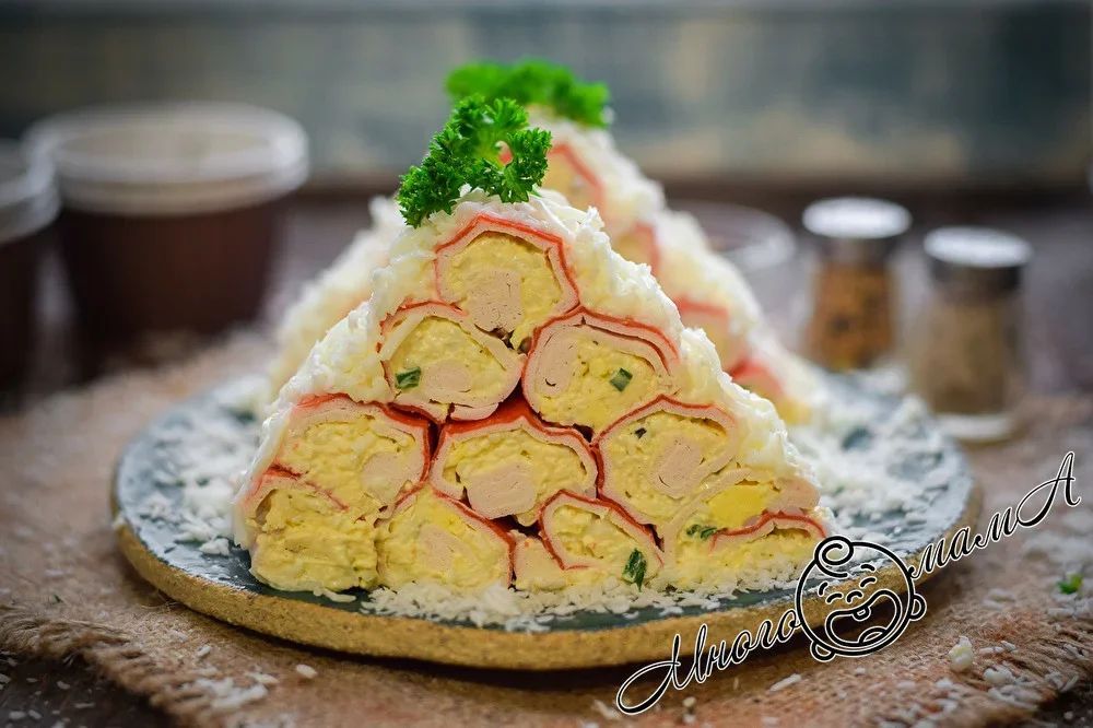 Салат в виде избушки: интересная подача и вкусное наполнение – гости точно не останутся равнодушными