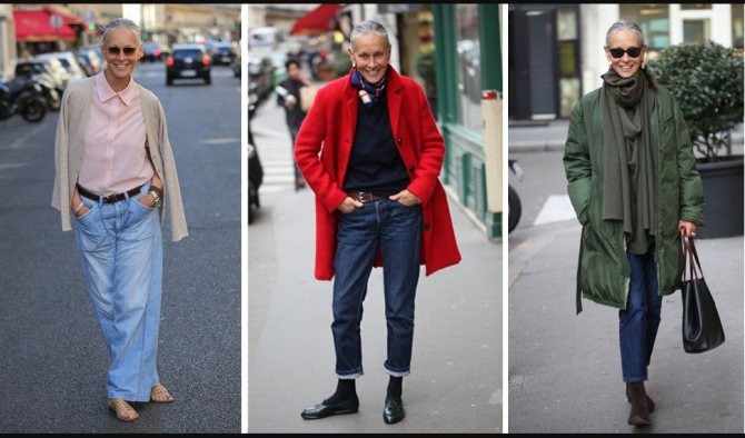 Классический цвет и фасон Трудно представить гардероб женщины без темных свободных джинсов. Модель, которая подойдет и для дневной прогулки, и для вечеринки (с правильно подобранным верхом и украшениями), и для поездки на дачу. Такие джинсы и женщинам в возрасте за 50 подойдут, и даже старше. Поскольку они удобные, относительно свободные и при этом визуально стройнят. Надевайте их с кашемировыми свитерами, блузками разных оттенков, джемперами, кардиганами – да и сложно представить себе вещь, с которой не будут сочетаться темные спокойные штаны. Подкатанные/укороченные Это спорный момент в теме «джинсы для 50 летних». Но если есть дамы, красиво носящие данный фасон, значит, ответ очевиден. Но тут важно понимать, с чем носить такую модель. Обратимся за помощью к Линде Райт. Бывшая модель уже вышла из возрастной зоны 50 – 55 лет, но продолжает радовать публику своими стильными сочетаниями. Вот несколько идей, с чем носить джинсы женщине за 50: Темный свитер, объемный шарф (если открыто
