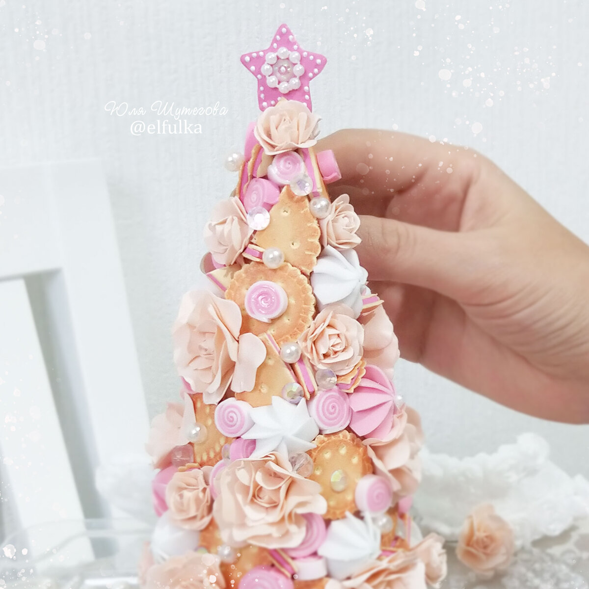 Приветствую всех любителей творчества и рукоделия! Добро пожаловать на мой канал, где я делюсь своим опытом создания открыток, коробочек и других изделий ручной работы, а также вдохновением, идеями и мастер-классами. Сегодня хочу рассказать вам о моих "вкусных" елочках😍 Каких только елочек я не делала за всю свою творческую деятельность. Были кружевные, цветочные, текстильные, классические с имитацией иголочек (о них я расскажу в другой раз), но вот елочек из различных сладких вкусняшек у меня еще не было)) Так сложилось, что в летом 2020г мое вдохновение привело меня к созданию различных сладостей из фоамирана. Я сделала печенье, зефирки, конфетки-леденцы, дольки мандарина, кусочки арбуза. Эта сладкая тема меня так затянула, что появилась идея о создание сладкой елочки! И в преддверии 2021г я принялась за воплощение своей задумки, в результате которой у меня появилось две аппетитные елочки. Елочки оформлены большим количеством декоративных цветочков ручной работы и сладостей, ср