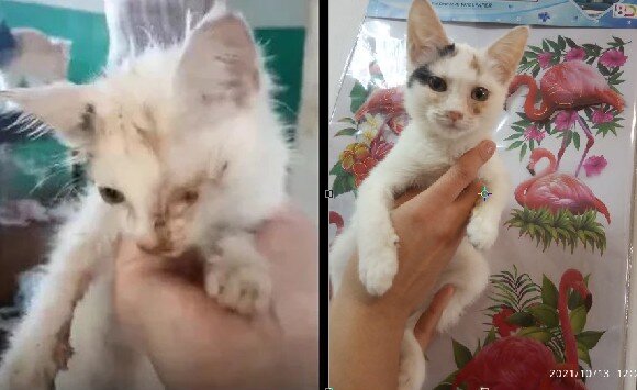 То что Поля осталась вообще жива, уже чудо. В августе ее забрали с адова места, где нездоровая женщина собрала бездомных кошек и собак. Женщина искренне считала, что это ее приют и даже верила, что она ходит туда каждый день, кормить животных и убираться. То что она не ходила туда по несколько дней, ее мозг, похоже, отсекал как ненужную и неприятную информацию и женщина спокойно себе проживала свою "волонтерскую" жизнь дома, пока кошки и собаки сидели взаперти без еды и воды. Наша СТАТЬЯ об этом "приюте" Понятно, что там был рассадник всяческих инфекций, причем уже смешанных так между собой, что диагноз какой-то поставить было нереально. Кошки в этом доме были уже только выжившие, только те, у кого иммунитет смог побороть болезни, а вот котята там умирали в течении 3-4 дней. Полечка умереть не успела, волонтер забрала ее почти вовремя, но инфекций малышка нахапалась капитально. Включая лишай. До сегодняшнего дня она была на платной передержке, вылечила лишай, стала активной, веселой з