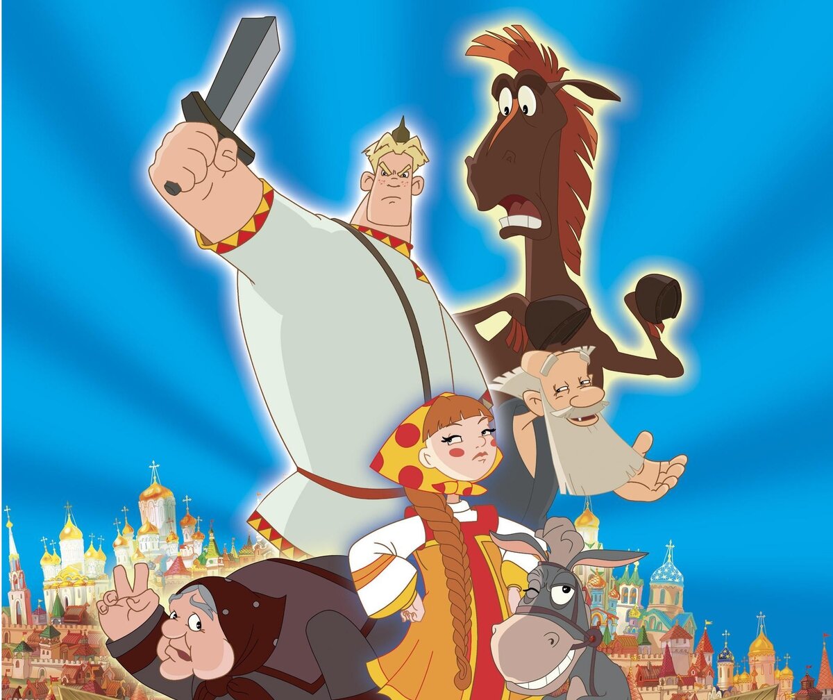В путешествие и на помощь ему приходят — дядька Тихон, молодая особа Любава, ее бабушка и говорящий конь Юлий.