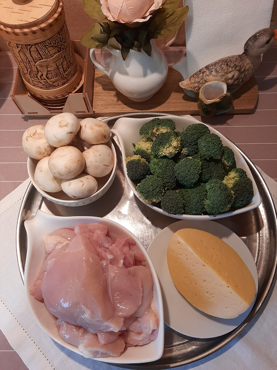 Это блюдо получилось у меня совершенно случайно. Первоначально приготовила его с томатами, а потом нашла в морозилке цветную капусту. Не пропадать же добру! Вкус меня покорил. Поскольку брокколи люблю ещё больше, то решила попробовать и с ней. Результат эксперимента перед вами. Здравствуйте, дорогие мои друзья канала "Взгляд из окна" . Приглашаю вас на свою маленькую кухню. Для этого блюда не буду давать точное количество ингредиентов. Всё зависит от вашей формы, вкусовых предпочтений. Мне понадобились: Я в этот раз выпекала в форме, но в кокотницах мне нравится больше, получается вкуснее. Несмотря на то, что блюдо очень простое, люблю готовить составные части заранее. Что можно сделать? Да почти всё, а в нужный момент блюдо остается только собрать. Этап 1. Тонкой соломкой нарезаем мякоть, добавляем на сковороду растительное ( или любое другое) масло, всыпаем любимые специи, они немного раскроются и сделают масло ароматным, и теперь добавляем курицу. Постоянно перемешивая, обжариваем