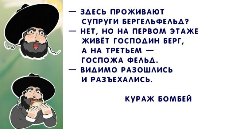 Одесса, вольно или невольно, выполняет функцию фабрики анекдотов, поскольку одесситы фактически живут внутри бородатого анекдота, ежедневно играя роли его персонажей. А взять русифицированный идиш или так называемый "русский язык Одессы" — уже смешно. Обожаю этот город у моря и его культурное наследие, не устаю восхищаться смекалкой и самоиронией одесситов. В этом выпуске фигурируют родственники из Бердичева (которые есть почти у каждого одесского еврея) и присутствует историческая ретроспектива. _________________________________________________________________________ Компромисс по-одесски: Если Абрам хочет провести отпуск в горах, а Сара у моря, то семья едет на море, но Абраму разрешается прихватить с собой лыжи. Одесский анекдот: "вас здесь не стояло" В восхождении на Гималаи в составе международной экспедиции участвовали русские, англичане и два еврея. После все разъехались по домам.