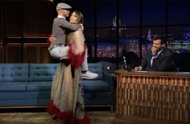 Актриса представляла свой новый проект — кабаре-шоу «Абсолютно нага». Екатерина Варнава появилась в студии «Вечернего Урганта в ярком наряде: фигуру звезды подчеркивало «голое» боди, а завершала образ актрисы люстра на голове. В какой-то момент Варнава призналась, что ей тяжело удерживать такое тяжелое украшение, и тогда Хрусталев предложил ей свою помощь. Однако все это закончилось публичными высмеиваниями. «В том-то и дело: ты ни лифчик, ни люстру снять не можешь», — сказала актриса.