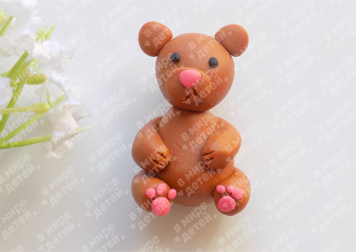 Осталось снова воспользоваться стекой и нарисовать рот. Наш пластилиновый медвежонок готов.