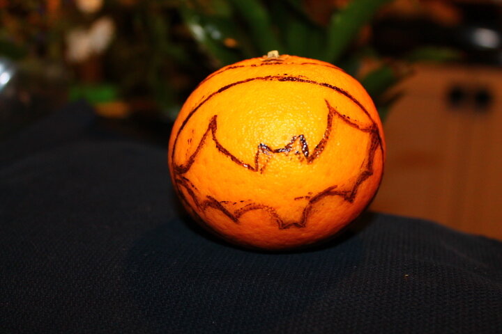 Кто сказал что джека на Хеллоуин можно сделать только из тыквы ? Я например научилась делать из мандаринов. Маркером я нарисовала на мандаринах Джека, летучую мышь ,и кошку. Вырезав узоры ножом для бумаги поставила на батарею сушится . Для формы надела их на использованные лампочки. Основой для моего подсвечника я решила сделать сухую ветку. И вот мне пригодилась банка почти застывшего строительного клея . Сделав отверстие в клее я вставила туда ветку и залила её смесью на основе цемента. Через день всё это засохло. Далее я приступила к тельцу самого Джека. Для туловища я использовала маленький тюбик от пва , отрезала кусочек носика и там где будет будущая шея покрасила коричневым акрилом. Но перед этим отмерила кусочек ткани на воротник ( нашла у себя уже с окантовкой ). Чтобы сделать лекало для пиджака я приложила тюбик к картону и на глаз нарисовала выкройку по длине примерно как два тюбика без крышечки. Рукава и штанины я выкроила шириной как тюбик и длинной как пиджак. Всё сшила н