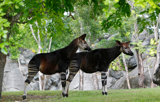 Это парнокопытное словно создано из нескольких животных: ноги черно-белые, как у зебры, размер и строение как у лошади