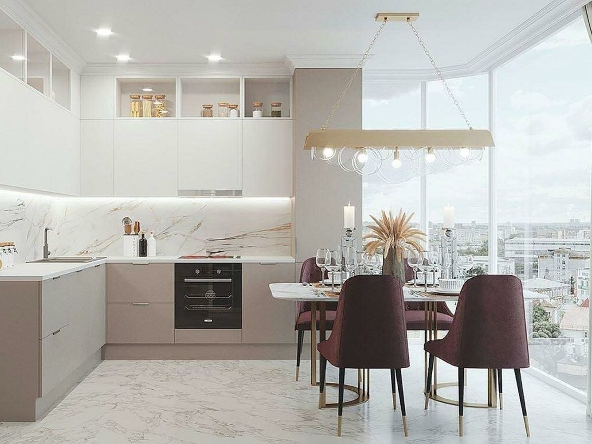 ★ Для кухни с панорамным окном подбирайте минималистическую мебель, вытянутую в высоту.