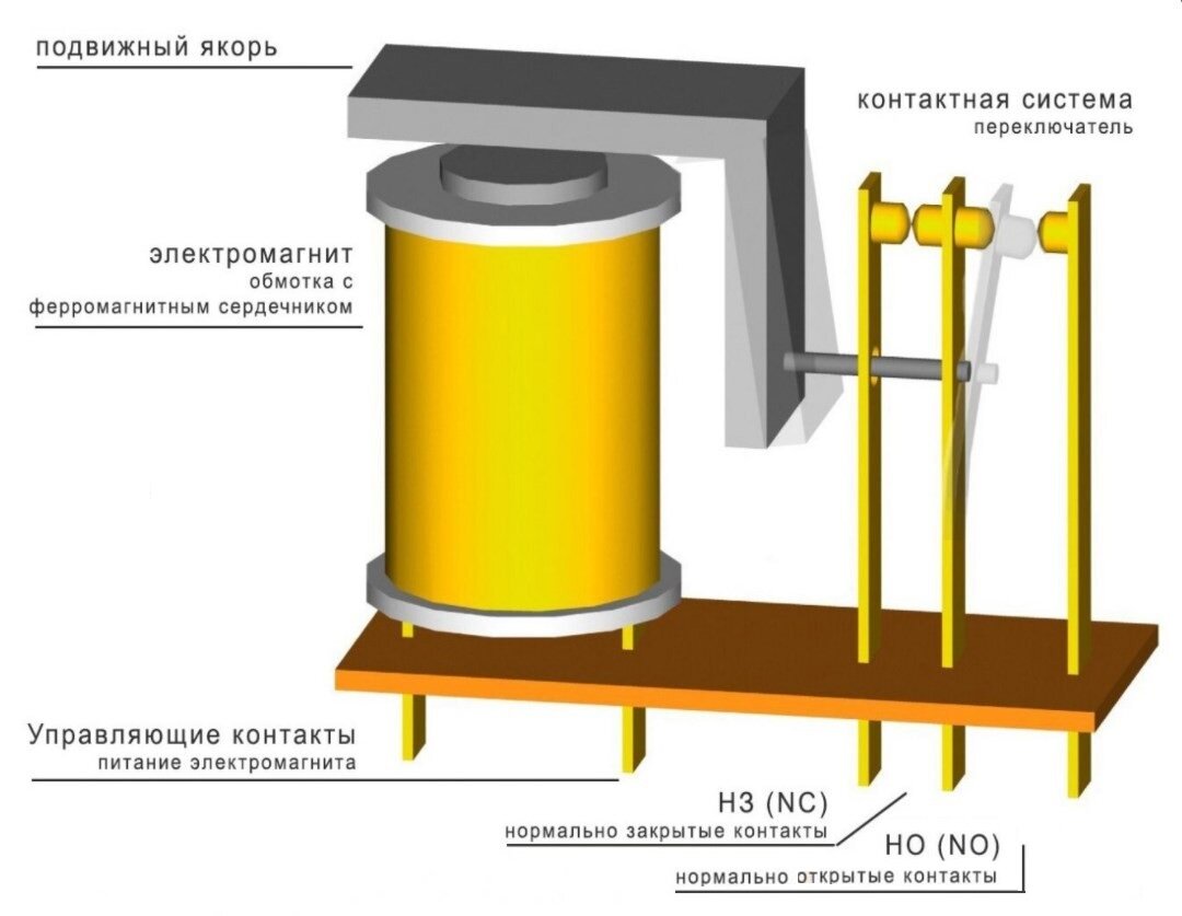 Электромагнитные реле - электромеханические устройства, работа которых основана на явлениях, известных по экспериментам с электромагнетизмом. Известно, что принцип действия обычных контактных выключателей заключается в том, что металлические элементы соприкасаются и через них может течь ток. Когда они разомкнуты, воздух между ними становится непроходимой преградой для тока. А эти контакты перемещаются электромагнитом, управляемым отдельной схемой.