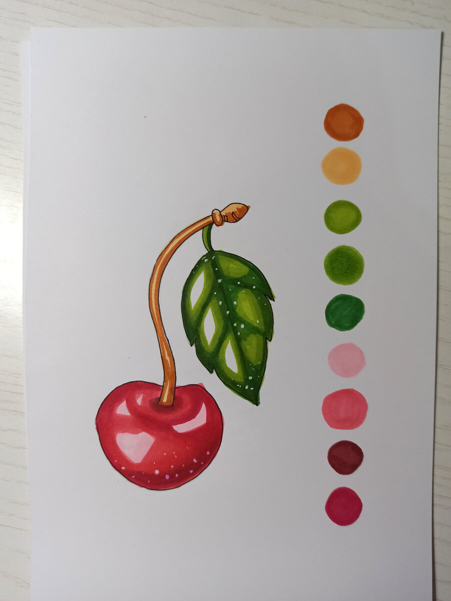 - 3 - 4 оттенка для самой вишни. От светлого к темному