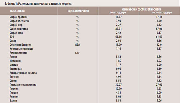 РЕЗУЛЬТАТЫ И ОБСУЖДЕНИЯ. Проведенные нами анализы зерновой смеси и готового корма показали, что в результате экструдирования происходит существенное изменение химического состава продукции (табл. 1). Так с 16,57 до 17,14% (или на 3,4 %) увеличивается концентрация сырого протеина - одного из основных показателей лимитирующих продуктивность животных. Известно, что нехватка даже 1 % кормового белка в рационе скота ведет к перерасходу 2,0…3,5% кормов и повышению себестоимости продукции на 4,0…5,0% [4].