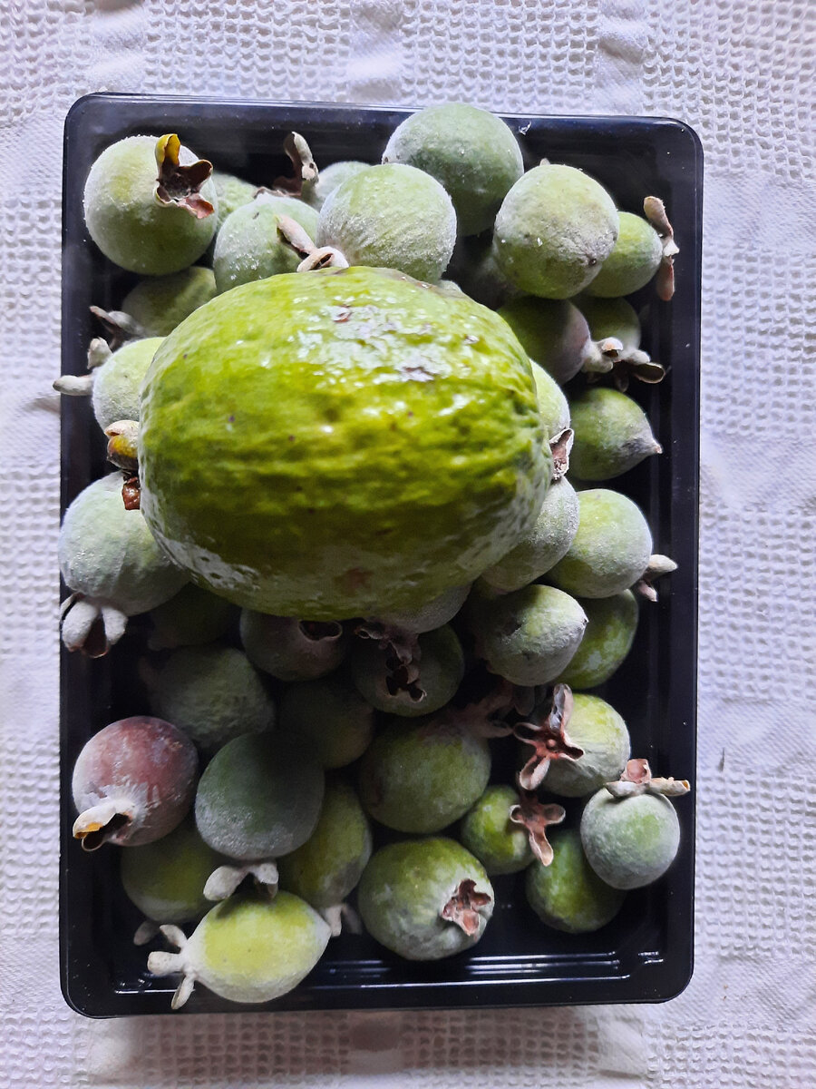 Меньше возни с заморозкой и разморозкой! У меня в саду много деревьев фейхоа. Когда мы переехали, я собирала только крупную, оставляя мелкую гнить в земле. Со временем, стесненная обстоятельствами, вынуждена была собирать всю: мелкую перетирала с сахаром, а крупную сдавала/продавала/угощала. Новый виток жизни заставил отказаться от чрезмерного использования сахара и я стала думать, что же делать с мелкой фейхоа. Помог случай. Очень полюбилось банановое мороженое собственного производства. Чтобы сделать мороженное из банана, его нужно очистить мелко нарезать тонкими пластинами, заморозить, а затем измельчить в блендере. Взбивать нужно до консистенции мороженого. Решила поэкспериментировать и сделать тоже самое с фейхоа. Мелкая фейхоа лучше всего для этого подходит. Ее нужно лишь помыть и срезать хвостики. Она быстрее замерзнет и ее легче будет взбивать в блендере. Крупную нужно еще измельчать, чтобы блендер не сломался. Но самое главное, в мелкой больше полезных веществ, так как вся по