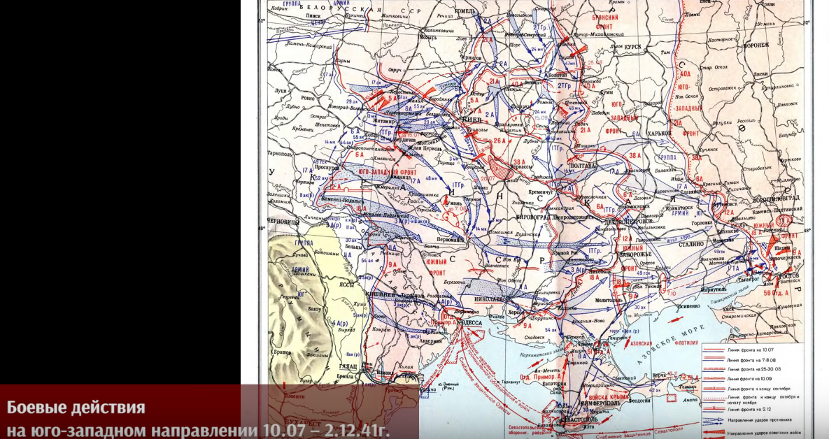 Главная опасность, которая возникла в связи с высвобождением группы Клейста после Киевского «котла»—это угроза удара на юг. На Днепре немецкие войска удерживались войсками 12-й армии(свежесформированной после окружения под Уманью). На дальних подступах к Крыму находились войска Южного фронта и эти войска Южного фронта очень активно действовали, они наступали, опрокинули румын, заставили немцев разворачивать из Крыма горных егерей и на самом деле доставили немцам немало неприятностей.