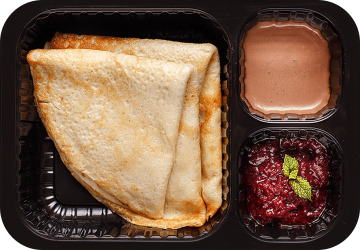Завтрак 1 16 - жиры, 7 - белки, 27 - углеводы. Рисовые блинчики Молоко 2,5%, меланж, мука рисовая, масло подсолнечное, вода, сахарозаменитель фитпарад 7, соль. Шоколадный соус Сливки 22%, шоколад 70%, сахарозаменитель фитпарад 7. Вишневый джем Вишня, вода, пектин яблочный, сахарозаменитель фитпарад 7. Завтрак 2 23 - жиры, 19 - белки, 35 - углеводы. Хашбраун с говядиной Картофельные хлопья, говяжий фарш (говядина, лук репчатый, морковь, чеснок, соль, перец черный молотый, масло подсолнечное), сыр моцарелла, меланж, укроп, куркума. Йогуртовый соус Йогурт 3,5% классический. Обед 17 - жиры, 6 - белки, 30 - углеводы. Грибной крем-суп с хлебцами по-итальянски Шампиньоны, вешенки, картофель, сливки 22%, репчатый лук, подсолнечное масло, черный перец молотый, соль, вода; хлебцы с томатами и орегано. Полдник 16 - жиры, 25 - белки, 43 - углеводы. Сэндвич с курицей, сыром чеддер и карамелизированным луком Хлеб для сэндвичей, куриное филе, сыр чеддер, лук репчатый, мед, бальзамический уксус, соевы