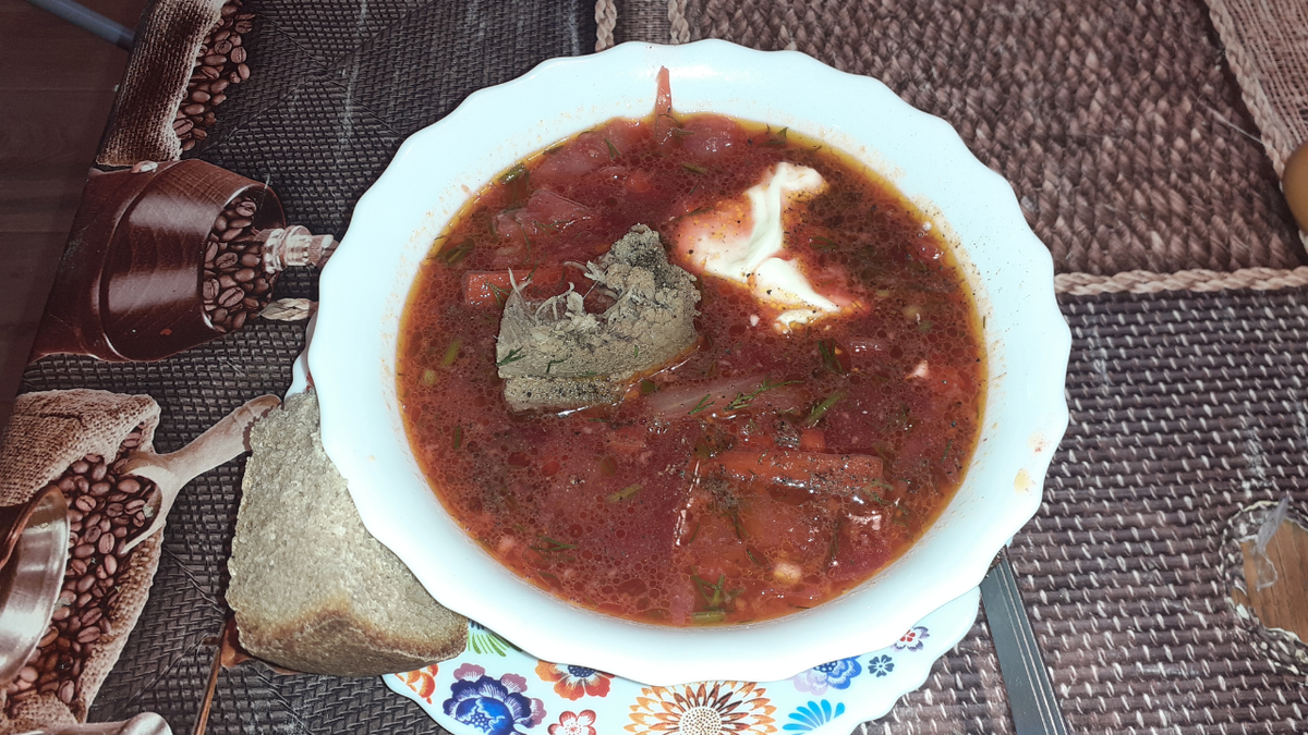 И вот, бульон готов. Мы вынимаем кусочки мяса и перекладываем их в отдельную посуду. Кусочки сразу порционные, по одному на чашку борща. Впрочем, пока нам мясо не понадобится. Свеклу, когда будет готова, мы тоже уберем с печки. Нам не надо ее пережаривать, нам надо, чтобы она сохранила вкус, цвет и не развалилась. Кстати, основные ингредиенты уже готовы. Остальное – обычные овощи для супа, за исключением нескольких секретов. Первый бабушкин секрет. Когда ставим варить мясо, одновременно можно добавить одну маленькую картошку. За час она бесследно разварится, но придаст особенный привкус бульону. Итак, чистим несколько картошек и шинкуем капусту. Картофель и капусту бросаем в бульон и варим до готовности. Пока они варятся чистим морковь и лук. Морковь режем на брусочки, лук, как понравится. Морковь и лук тушим на растительном масле на медленном огне. Это важно, они не должны жариться, из них витамины должны уйти в масло, а лук и морковь тушим до мягкости, при этом они не должны поменят