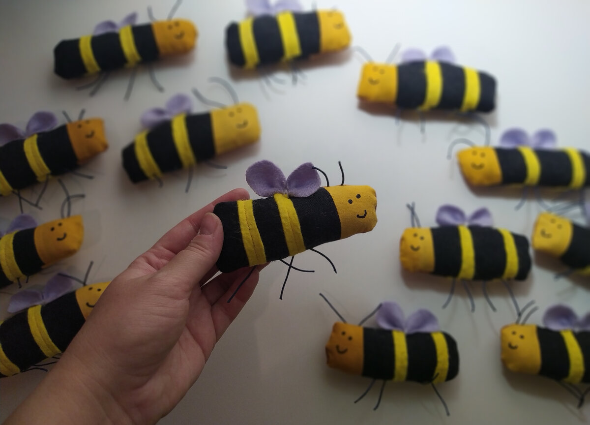 Всем доброго дня! В середине августа празднуют медовый спас, пчелок и их родственников я боюсь, честно сказать, но шила несколько раз. Поделюсь идеей, самый мой любимый стиль - наивный примитив. В нем столько всего!...на самом деле...не такого уж и наивного...но о философии не сейчас, сейчас - о пчелах) Выбрала за основу колбаску, в которой просто чередую полосками желтый и черный цвета ткани или нашиваю контрастную полоску сверху. Пчелы за 10 минут, серьезно! Крылышки - кожзам или фетр, лапки - шнур, вшитый с изнанки. Наивный добрый мистер пчёл))) Сфотографирован на празднике мёда на фоне демонстрационного улья за стеклом на фоне, можно сказать, своих собратьев!)А вы шьете что-то тематическое? Отличная вещь из пледа из фикс прайса Корова лоскутная Еще буренка лоскутная Первая лоскутная сказка Вторая лоскутная сказка Как я применила подаренный клубок) Выкройка моих самых ходовых зверей