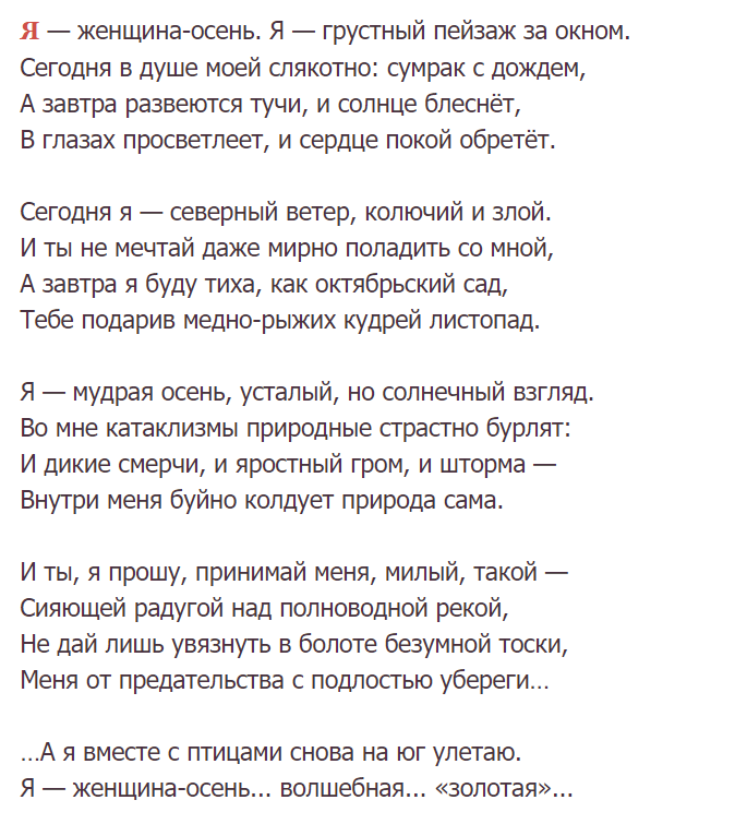 Я — женщина-осень. Я — грустный пейзаж за окном.