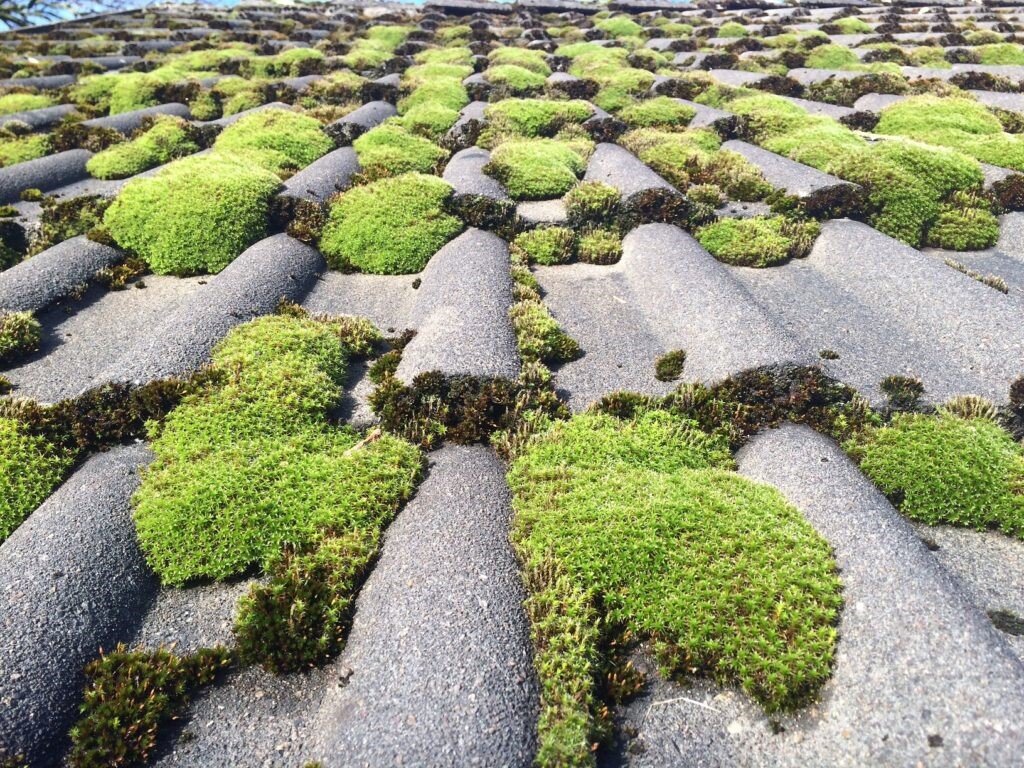 Красиво мох выглядит лишь в сказках на домиках волшебников, а в реальной жизни такая "красота" наносит прямой вред материалу. Мох образуется на плоских и скатных кровлях с любым покрытием: все виды черепицы, в том числе гибкая, керамическая, металлочерепица с матовым напылением, асбестоцементные листы, рулонная кровля. От вредного нароста не защищен ни один материал. Потому что пористость структуры в укрывных материалах – это излюбленное место для оседания пыли, грязи, туда же попадают остатки листьев, хвои от высоких деревьев, растущих рядом с домом. Загнивающая субстанция внутри рельефа становится благоприятной средой для развития бактерий, грибка. Мох начинается разрастаться при воздействии на субстанцию солнечного света и влаги. Главная опасность – это разрушение и порча качества покрытия, что сократит сроки эксплуатации всего здания. Кровельщики выделяют основные риски влияния растительности: 1. Шероховатая поверхность материала – отрицательное свойство в этом вопросе, ведь именно