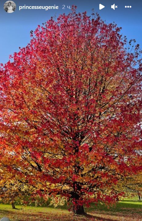 31 октября во многих странах ежегодно празднуют праздник Хэллоуин. День накануне Дня Всех Святых. Именно оттуда и идет история названия - "all hallows eve", что означало - "канун дня Всех Святых". Одним из атрибутов этого праздника является светильник Джека - тыква с вырезанной в ней гримасой. Многие празднуют этот день и украшают свои дома и дворы всевозможными атрибутами и тематическими мелочами и фигурами, наряжаются в костюмы. Не обошел стороной этот праздник и королевских особ - вчера в своем инстаграме внучка королевы Елизаветы принцесса Евгения опубликовала серию "историй" (инстаграмных stories) и фотографию. Но эти фото непростые, а тематические. Один из снимков - красивое дерево, покрытое яркой цветной листвой. Видимо, это дерево растет неподалеку от дома принцессы.