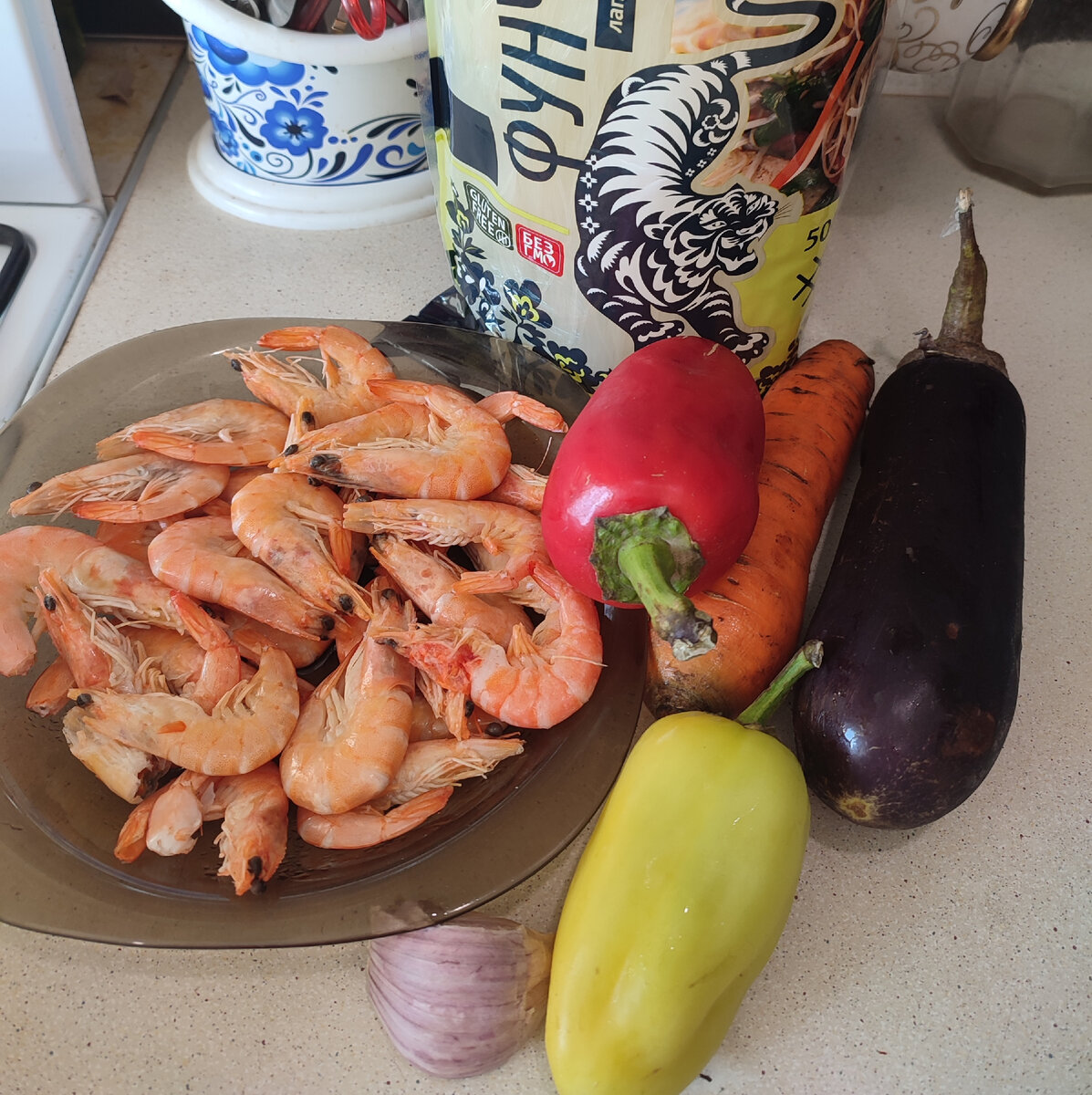 Худею. Готовлю свою любимую фунчозу с креветками и овощами. Готова есть ее хоть каждый день 😍