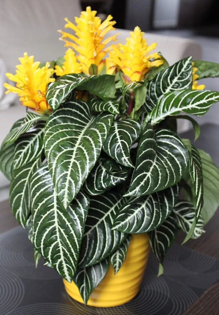 В роду более 30 видов. Обитают в Колумбии, Бразилии и в Перу. Это многолетние вечнозеленые полукустарники, в комнатной культуре достигающие до 1 м высоты. Листья крупные (10-30 см длиной и до 25 см шириной), глянцевидные, удлиненно-яйцевидной формы, по краям слегка зазубренные. Листья супротивные, темно-зеленого цвета, с яркими золотисто-желтыми жилками. Такого же цвета полосой листья окаймлены по всей окружности. Располагаются они на коротком четырехгранном черешке красноватого цвета. Цветки невзрачные 5 см длиной, желтые, верхушечные, собранные в верхней части побега в зонтик; прицветники 2,5-3,5 см длиной. Санхеция - растение светолюбивое и влаголюбивое. Почву необходимо постоянно поддерживать во влажном состоянии, избегать сквозняков и перемены места нахождения растения, иначе оно может начать скидывать листья. Из-за недостатка влаги листья и побеги начинают опускаться и свисать, но после обильного полива растение легко восстанавливается. В зимний период ей необходимы свет и тепло,
