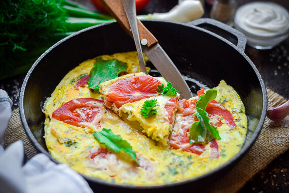 Омлет с сыром, помидорами и кабачками на сковороде - простой рецепт