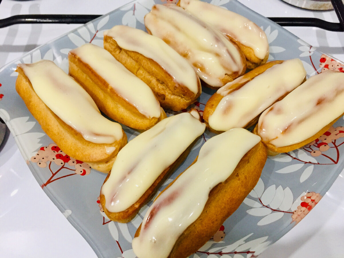 Из такого теста готовят всем известные эклеры и профитроли: в духовке оно поднимается, внутри у него образуется пустой "кармашек", который наполняют сладким кремом или несладкими начинками (творожным сыром, икрой, салатами). Из чего и как заваривается и замешивается тесто, как испечь и не испортить? Все получится, если соблюдать простые правила. Расскажу на примере заварных пирожных. 📌 Ингредиенты для теста: вода - 200 мл, сливочное масло - 100 г, соль - щепотка, мука - 200 г, яйца - 4 шт. 📌 Противень слегка смазываем растительным маслом и держим под краном с холодной водой, затем воду стряхиваем. А те капельки, которые останутся, повысят влажность в горячей духовке, и тесто хорошо поднимется. Я готовлю заварной крем: смешиваю стакан сахара с одним яйцом, добавляю стакан молока и варю до загустения. Убираю с огня, кладу 50 г сливочного масла. Желаю удачи всем, кто воспользуется рецептом! #заварное тесто #тесто для эклеров ✅ Еще больше вкусных и простых фоторецептов ЗДЕСЬ на канале